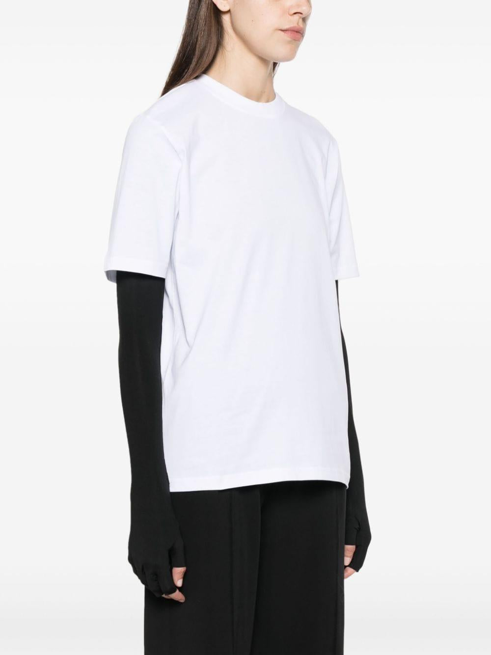 logo-print organic cotton T-shirt from 032c featuring optical white, organic cotton, logo print at the sleeve, crew neck, short sleeves and straight hem. This item is made from at least 50% organic materials.. Learn more about what makes a product Conscious on our Conscious Criteria page.