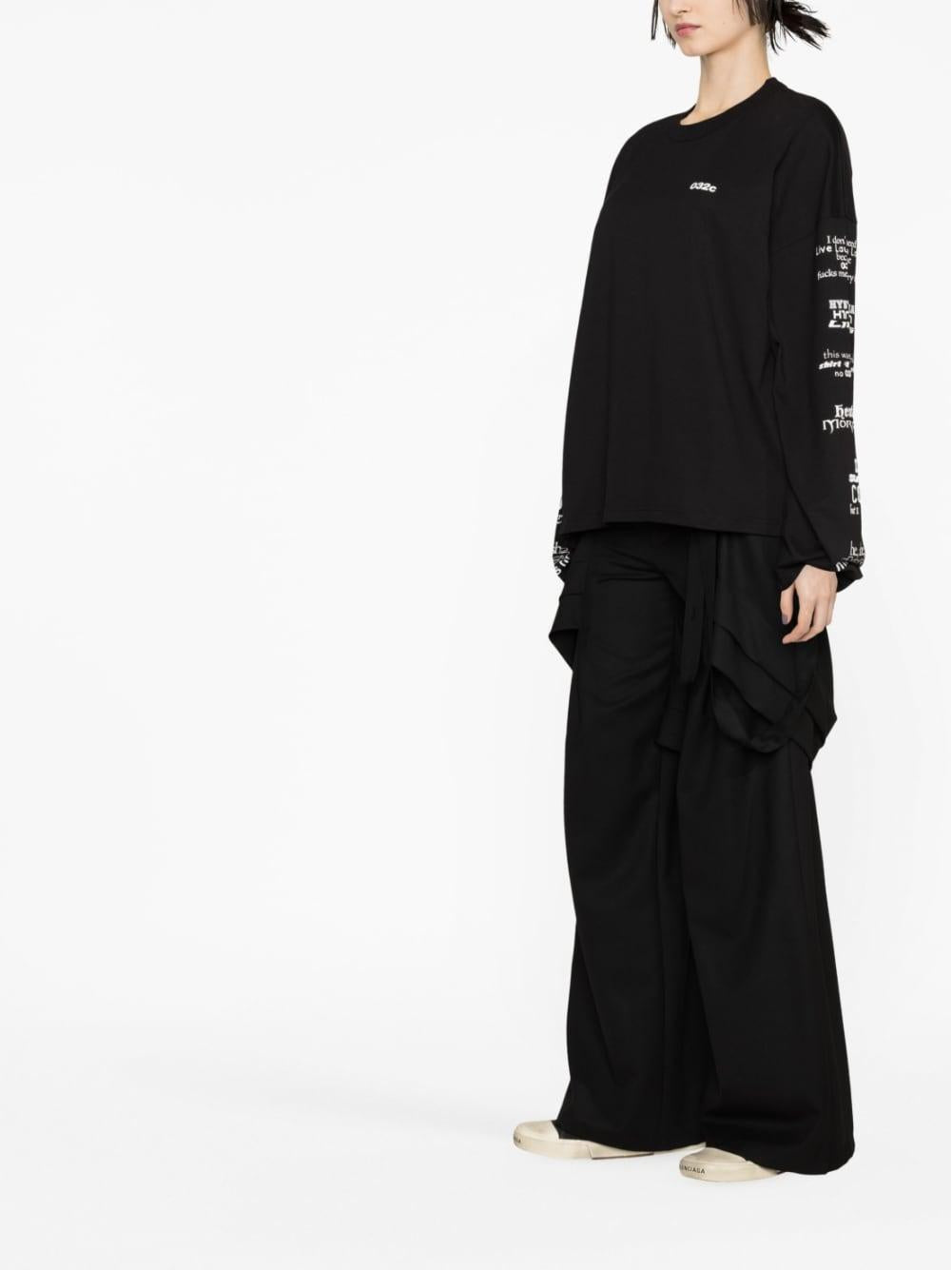 logo-print long-sleeve T-shirt from 032c featuring black/white, organic cotton, logo print at the chest, graphic-print sleeves, crew neck, long sleeves and straight hem. This item is made from at least 50% organic materials.. Learn more about what makes a product Conscious on our Conscious Criteria page.
