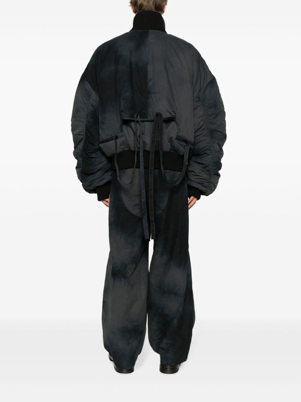 midnight blue padded design logo print at the chest high neck front zip fastening two front welt pockets sleeve patch pocket strap detailing long sleeves ribbed cuffs and hem